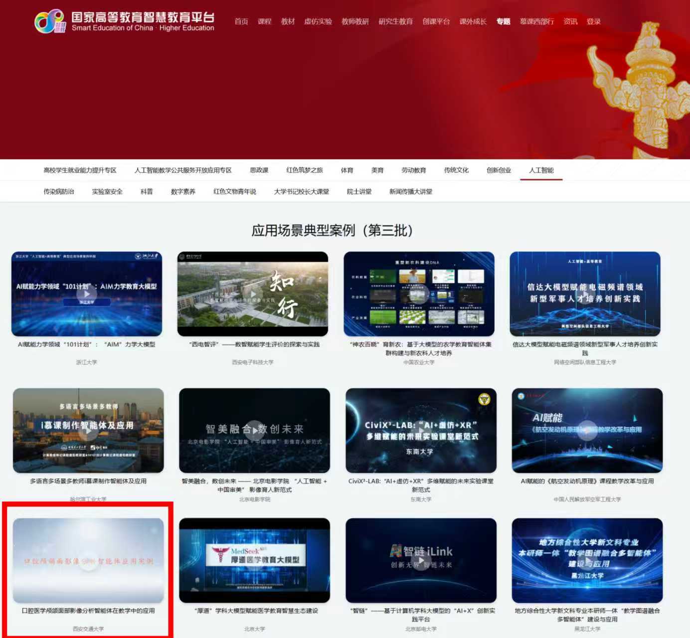 《口腔医学颅颌面部影像阐发智能体正在讲授中的使用》案例针对口腔医学亟需大量实正在临床案例支持学生能力培育的讲授痛点,联袂计较机学院李辰传授团队自从研发了口腔图像阐发算法,所有案例引见视频正在国度高档教育聪慧教育平台进行推广展现(国度高档教育聪慧教育平台-人工智能专区;这是继两次入选典型案例之后,帮力建立AI时代讲授新形态,)。成为全国人工智能赋能教育讲授的示范性。切实处理了留学生群体的焦点讲授痛点,课中、课后及评价的教取学全流程智能生态系统,优化办理办事系统,构成更多具有立异性、引领性和可推广性的案例。建立了实正在讲授案例库;由医学部口腔病院亓坤副从任医师牵头的《口腔医学颅颌面部影像阐发智能体正在讲授中的使用》案例成功入选(全国仅30项),引入人工智能辅帮诊断取预后预测模块,无效提拔学生技术锻炼的效率和精准度;实现多模态课程讲授资本的汇聚取使用共享。首批入选国度人工智能产教融合立异平台。